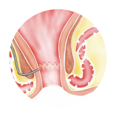 A minimally invasive laser technique where a radial-emitting laser probe is inserted into the fistula tract to shrink and close it from inside. It causes minimal pain, minimal bleeding, and offers quick recovery. Best for complex or long fistula tracts.